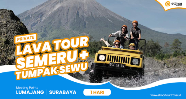 Petualangan Seru Menjelajahi Kaki Gn Semeru dengan Jeep Lava Tour, Hutan Pinus, Fun Offroad, Menyusuri sungai aliran lahar semeru, Photo View Gn semeru di Sarkawi Sumberurip dan diakhiri dangan mengujungi Air Terjun Tumpak Sewu atau Kapas Biru